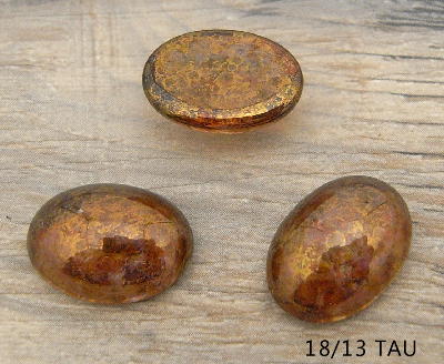 チェコガラスカボション(2個入り)18/13mmオーバル型ラスタートパーズゴールド(透明タイプ)